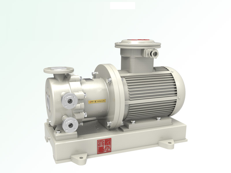 無泄漏襯氟磁力高(保)溫離心泵[簡稱:襯氟磁力高(保)溫泵]是應用現代磁力學原理,利用永磁體的磁力傳動實現扭矩的無接觸傳遞的一種新型泵,就是電機帶動外轉子(即外磁鋼)總成旋轉時,通過磁場的作用磁力線穿過隔離套帶動內轉子(即內磁鋼)總成和葉輪同步旋轉,由于介質封閉在靜止的隔離套內,從而達到無泄漏抽送介質的目的。泵體、泵蓋設計了雙層冷卻(保溫)裝置,可使用水、氮氣(蒸汽)對泵體內介質冷卻(保溫),確保進入泵內的介質保持在較適合的溫度下安全運轉,保證了介質在輸送過程中不會冷凝、結晶、汽化,****解決了機械傳動泵的軸封泄漏、冷凝、結晶、汽化,而設計的全密封、無泄漏、無污染、耐高溫、保溫、高效節能的新型工業用泵。性能達到國際標準、可替代價格昂貴不銹鋼,特殊合金材料、進口的化工泵。