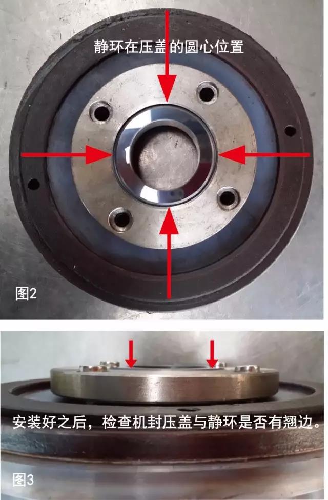 2、機(jī)封壓蓋4個(gè)螺絲必須對(duì)角上緊,否則會(huì)造成靜環(huán)不水平,影響后期使用效果(如圖3)。